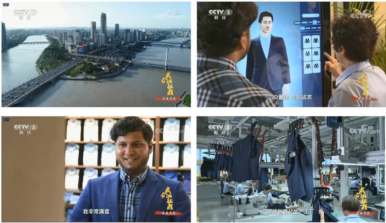图 CCTV财经频道拍摄的建国70周年节目,重点介绍了三体科技团队所开展的3D量体和服装工业4.0智能制造