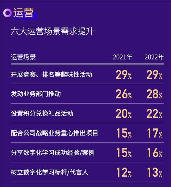 在运营层面,企业越来越认可创意性、趣味性的柔性运营方式,线上线下学习内容与体验交织互渗的精细化运营将是未来的主流。项目设计中突出工作场景化、体验感会有助于激发企业学习者的参与意愿。
