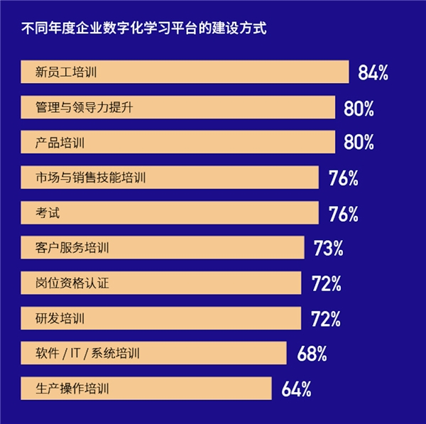 在内部能力建设大背景下,数字化学习平台、内容、服务的投入将延续净增长势头,产品与销售技能培训将是数字化学习应用高频的场景。