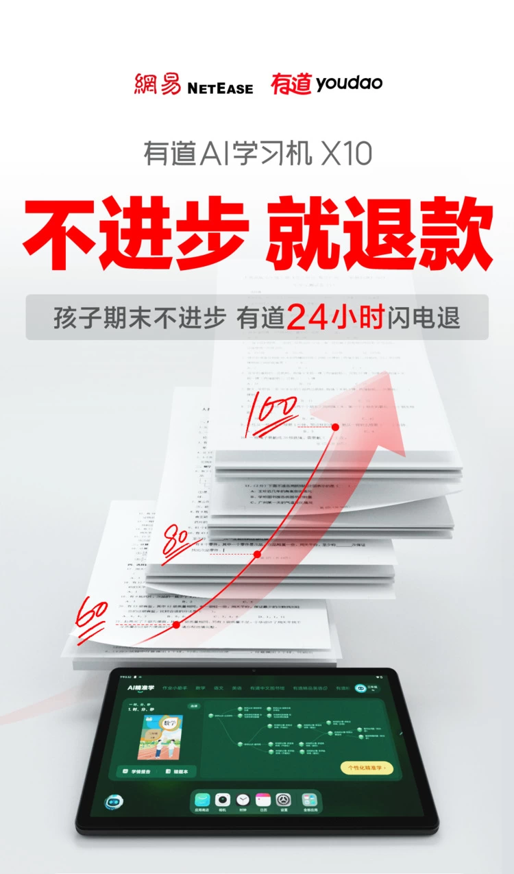 只有「有道AI学习机X10」敢承诺“不进步就退款”!