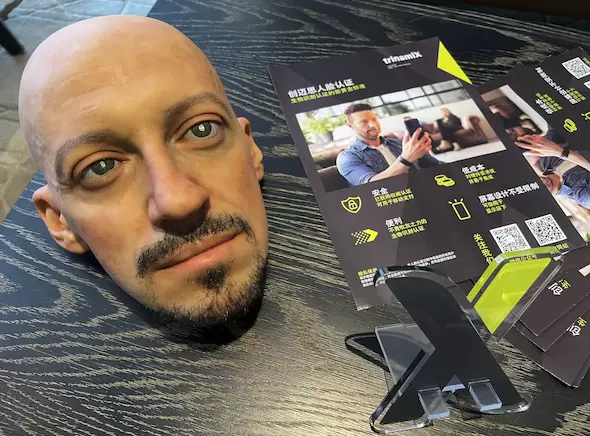 Stefan Metz专门在骁龙峰会的中国分会场向媒体详解了该解决方案。在采访现场,借助根据Stefan Metz本人制作的高仿真面具,可以轻松解锁自用的一台iPhone手机,但是却无法通过创迈思trinamiX的人脸认证。