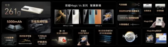 基于双轮驱动的极致产品理念和对折叠屏用户痛点的深入研究,荣耀Magic系列折叠旗舰在性能、通信、手感体验等维度全面实现直屏旗舰水准,在此基础上,勇于挑战折叠屏体验无人区,致力于充分利用折叠屏形态优势,为用户带来超越预期的实用性突破,创造新的市场价值。本次发布的荣耀Magic Vs系列不仅是通信工具,还基于底层MagicOS 7.0 能力为消费者带来时间效率价值和超越直屏机的科技体验价值,引领折叠屏行业升维进化。
