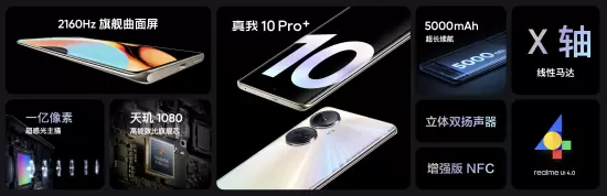 作为主打科技越级的新品,真我10系列也带来了不妥协的旗舰级影像和性能体验。真我10 Pro+采用一亿像素超感光主摄,搭配HyperShot旗舰影像架构,带来成像速度、画质以及夜间拍摄能力的大幅提升;搭载天玑1080处理器,台积电6nm先进制程,带来高性能低功耗的均衡表现;67W智慧闪充+5000mAh超大电池的续航组合,让用户告别电量焦虑;还有X轴线性马达、立体双扬声器、多功能增强版NFC等旗舰体验,售价仅需1699元起。