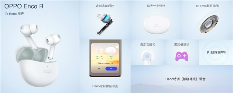 发布会上,OPPO同步推出新款真无线降噪耳机OPPO Enco R Pro与OPPO Watch SE深灰版。OPPO Enco R Pro采用12.4mm超巨动圈,专为Reno定制调音,支持ANC主动降噪,在影音娱乐时为带来身临其境般的沉浸感。OPPO Enco R Pro具备 28 小时超长续航、专属定制个性化主题。OPPO Enco R Pro零售价 499 元,Reno9 系列用户购机可立减 100 元。OPPO Enco R Pro将于 12 月 2 日在OPPO商城、天猫旗舰店、线下授权门店正式开售。