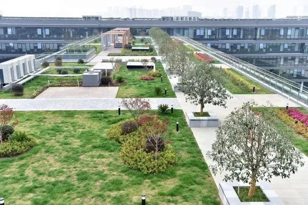 此外,园区积极响应政府"海绵城市建设"的号召,灵活运用生物滞留设施、调蓄绿地、雨水回用池等多种绿色雨水基础设施,在保证景观效果的整体性的同时也积极发挥生态系统对雨水的吸纳、蓄渗和缓释作用,合理实现雨水资源化,优化园区水循环生态,改善城市生态环境。