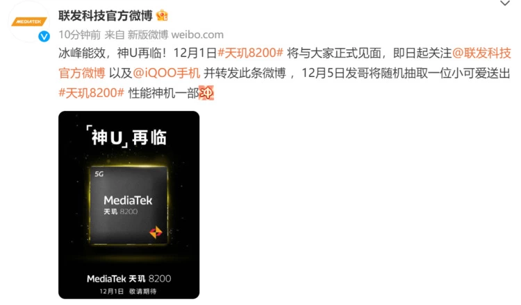 年底,芯片和手机厂商动作不断,惊喜频出。其中最值得期待的消息之一就是联发科天玑系列新品发布。根据联发科官微,12月1日天玑8000系列新一代芯片天玑8200将正式与大家见面,同时,iQOO Neo7 SE将全球首发搭载天玑8200。