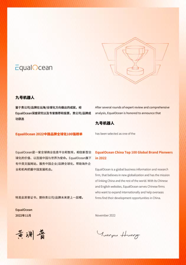 - 创造真价值|九号公司旗下九号机器人荣登2022中国全球化品牌100榜单