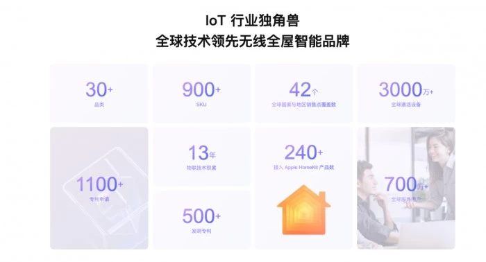 Aqara作为全球loT行业独角兽,目前推出了包括网关、控制器、传感器、照明、门锁等 30 多个品类,700多款产品,超 3000 万 +全球激活设备数量,服务全球 700 万+用户。此外, Aqara 获得了众多的 AI 专利技术,借助这些自研传感器的布局来感知用户行为习惯数据,为智能系统中搭载的 AI 算法提供学习数据,使其数字化并有能力理解和反馈用户需求。在自主深度学习后,智控系统可根据不同用户的使用习惯,“推理”出贴合用户的个性化需求,并联动各场景提供“主动”服务。除了可接入自研系统,Aqara产品也同时支持全球多个国际主流智能家居平台系统和智能语音系统。