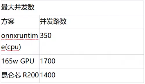 对比不同后端的性能数据onnxruntime(cpu)、165w GPU、昆仑芯XPU。
