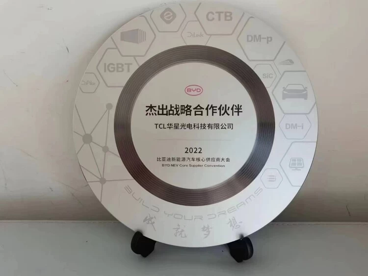 自双方合作以来,TCL华星始终坚持将技术创新与比亚迪产品生态深度融合,陆续参与多个重点项目,此次获2022年比亚迪“杰出战略合作伙伴”这一奖项,不仅是对TCL华星在面板行业处于头部领先的高度认可,也为TCL华星的车载业务锚定了新的起点。