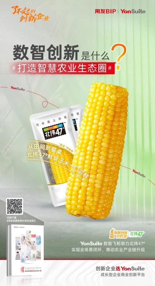 从一穗鲜食玉米诞生之前——玉米种植开始,北纬47°就开启了多个环节的数智化改造。北纬47°联合用友YonSuite在全流程产业链上开展了深入合作,依托用友YonSuite平台,实践生态赋能种植,从原料入库到销售出库,北纬47°实现数智化的全场景赋能。今年春种秋收时期,得益于用友YonSuite稳定的数智飞轮场景化应用,北纬47°轻松实现数亿穗的鲜食玉米采购入库、食品加工和出库,通过YonSuite实现数亿穗玉米的生产成本精细化核算及业务流程的高效协同,而在过去,这一数量级的“这笔账”及时算清是一道让企业人头痛的难题,如今在YonSuite帮助下可以有效降低企业经营风险。