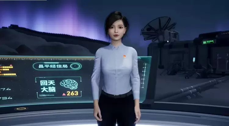 在3D场景建模方面,回天大脑整体的场景设计需要做到虚实结合,263将昌平区地图的关键元素、代表中国的长城和回天大脑元素很好地融入了场景,让“昌小平”更好地与充满未来感的场景相融合。