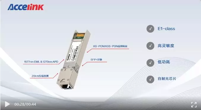 采用SFP+封装,传输距离可达到20公里,覆盖XG-PON/XGS-PON应用场景。