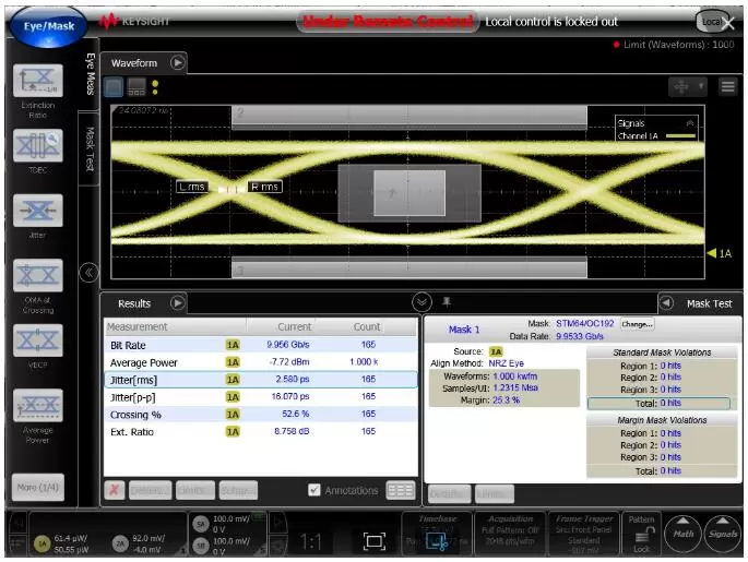测试常温和高温眼图TDP在1db左右,三温最大功耗为3W。