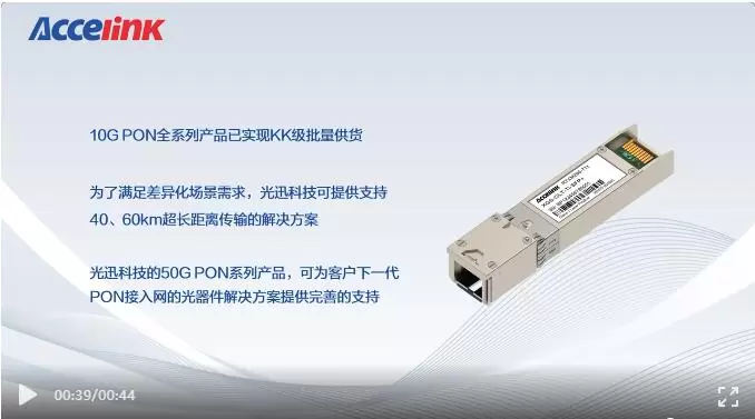 同时,为了满足差异化场景需求,光迅科技还可提供支持40、60km超长距离传输的解决方案。目前,10G PON全系列产品已实现KK级批量供货。