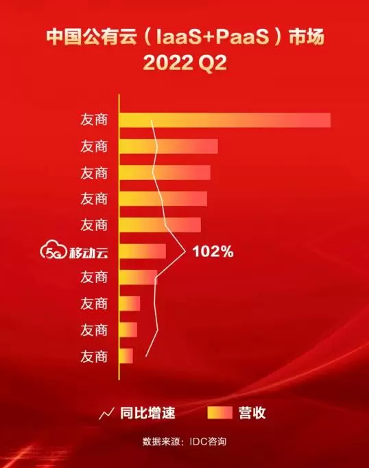 排名上,移动云公有云市场份额两年时间一路冲进了第六,专属云服务位列第四、政务云服务运营位列第三,边缘云领域则位列第一。移动云完成跨越式进展,跃升国内云行业的头部位置。