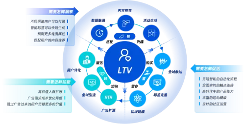“现在用户的触点越来越多,无法通过单一触点实现用户的转化和连接,需要考虑不同的场域里和用户的触点连接,考虑用户全生命周期价值,塑造全域的营销推广,”腾讯云副总裁黄识表示,“企业营销的当务之急,就是要聚焦洞察、促活、拉新三大核心方向,找准目标客群、精细化设计客户旅程、低成本、高质量获取新用户,运营激活老客户、利用营销技术产品提质增效,实现全生命周期客户价值的长效增长。”