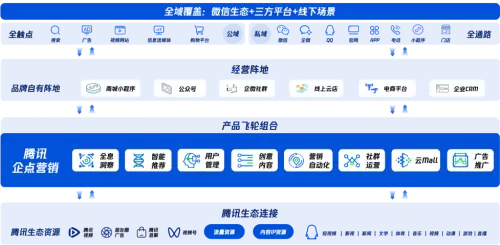 12 月 1 日,在腾讯数字生态大会「营销服 CRM」腾讯企点专场上,腾讯企点营销产品全新升级的能力版图,发布全域营销产品图谱。通过帮助品牌构建的“全域增长飞轮”,连接腾讯生态资源与第三方能力,突破传统市场内运营思路,实现全域数据洞察。