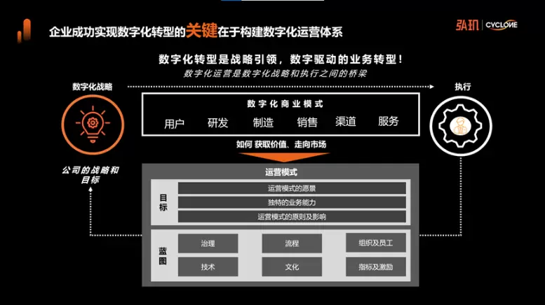 数字化转型需要与之相对应的数字化运营体系的支撑,中国企业未来10年数字化转型的重点是构建数字化运营平台,通过技术敏捷引领业务敏捷。