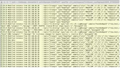 RTI DDS Spy的输出格式得到了改进和简化。现在有两个选项来显示示例:普通(PLAIN)或紧凑(COMPACT)。DDS Spy现在还为您提供选择打印发现数据、用户数据或全部(Connext 7.0基于数据分发服务(DDS™)标准)的选择。