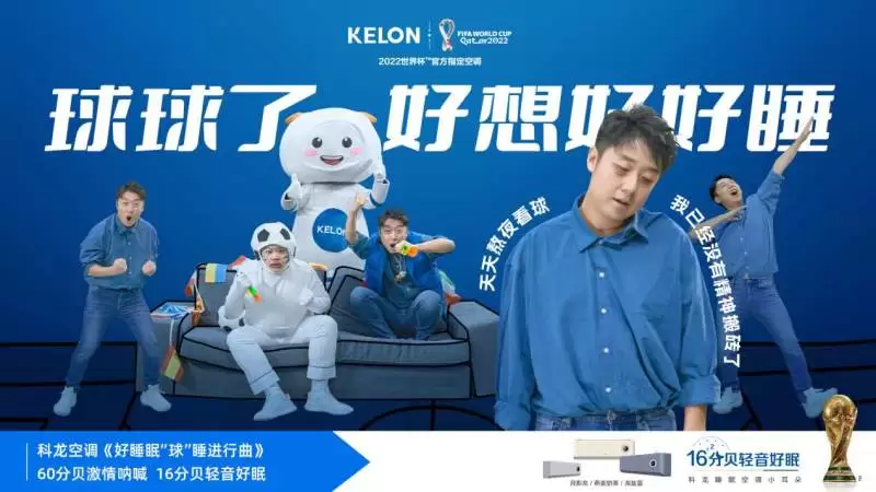 作为2022年规模最大的世界杯足球赛事,卡塔尔世界杯不仅是一场顶级足球盛宴,更是品牌营销的一场大战,各品牌纷纷使出杀手锏,希望借势世界杯的流量进一步提升市场份额,吸引消费者的关注。作为2022年卡塔尔世界杯官方指定空调,科龙空调更是精准洞察中国球迷熬夜看球痛点,以谐音梗和产品“16分贝轻音好眠”功能利益点融合,推出了《好睡眠“球”睡曲》,欢快的节奏,魔性的演绎让无数年轻人“上头”。