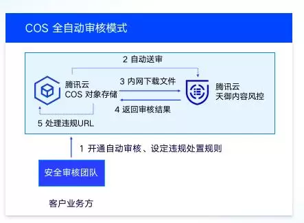 对于数据的送审,违规数据的处置功能逻辑完全可以交给COS和天御内部系统实现,真正实现零研发接入。并且伴云审核还有一个很独特的优点,由于COS和天域系统可以通过腾讯内部网络通信,因此客户不需要承担因审核下载产生的费用。