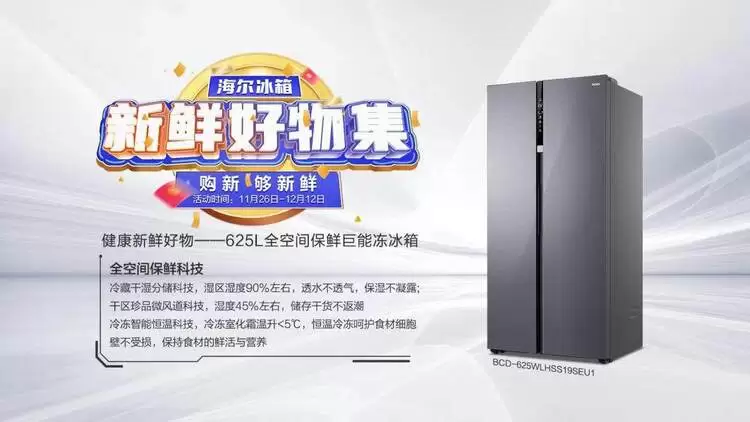 比如,针对健康保鲜需求,“海尔冰箱新鲜好物集”设置了健康保鲜好物场景。拿主推的一款650L全空间保鲜博观冰箱来说,区别于普通风冷冰箱冷冻室温差大,冷风直吹食材,导致冻肉等营养流失,口感柴涩,其通过搭载原创的底置恒温保鲜科技,做到了温度波动≤0.1℃,空间风速0m/s,为食材营造恒温、0风感的存储环境,紧锁营养、风味。针对用户担心的细菌问题,原创的AI智净系统能够主动感知异味并自动杀菌,杀菌率、除农残率、抗病毒率、抗霉菌率、除异味率均达到行业领先水平。