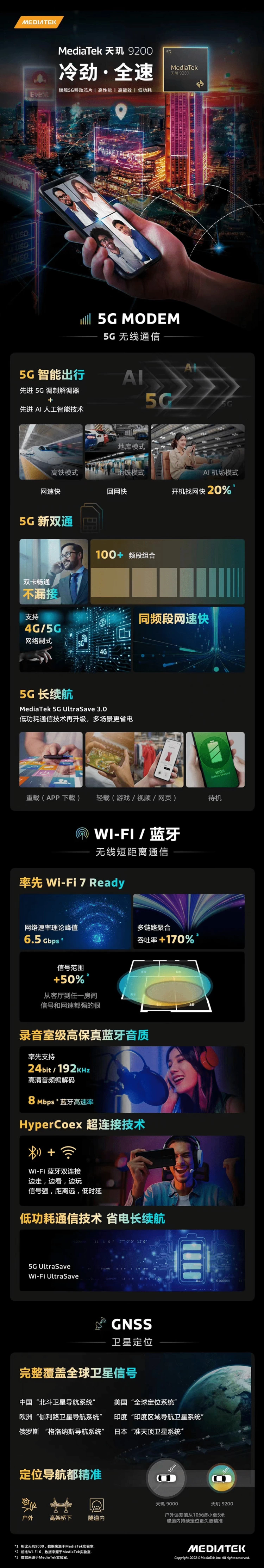 - 天玑9200全面升级旗舰手机连接体验,领先技术覆盖5G、WiFi 7、蓝牙、导航