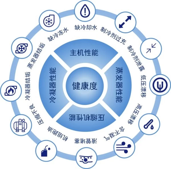 通过准确的反应主机、压缩机、冷凝器及蒸发器的性能变化,及时发现性能衰减类故障。