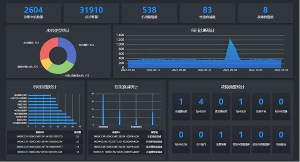 包括制冷剂泄漏、冷凝器结垢、液管堵塞、机组跑油、压缩不良等。通过提前预警及准确定位,减少主机异常停机。