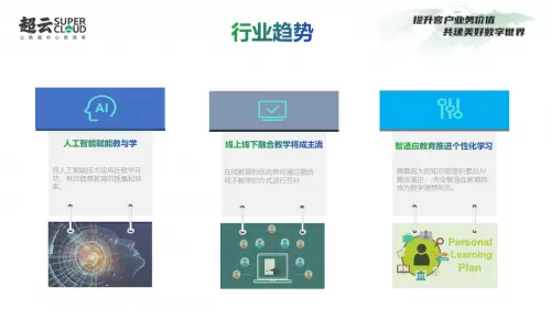 超云多年来一直深耕在教育行业,不断加大在自主研发、自主创新方面的投入,现已形成北京、南京、广深三地实验室联动的研发体系,在多项关键技术上攻克难关,依托双云、多芯共进的发展战略和强大的研发能力,在软硬件一体化、深度融合、多态场景等方面取得突出成绩,多样化的产品线可针对不同行业提供深度定制化产品与服务,与生态伙伴一道打造行业领先的一体化解决方案。同时,超云完善的营销、售后服务保障体系,也将为业务的拓展提供强有力的支持。