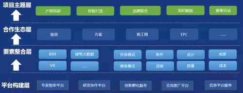 正向设计交流平台的核心价值是与广大行业伙伴构建协同发展的共同体。以专家智库平台、研发协作平台、创新孵化服务、交流推广平台、信息平台服务为基础平台层,通过整合信息技术相关要素和设计业务相关要素,围绕设计业务中的规划、方案设计、施工图设计等业务生态,构建包括产研科研、样板打造、品牌联合、组织赋能和赛事活动等相关的合作项目主题,通过数据向上下游传递,将供需端融合,产生新的生产力,形成新的商业模式,进行价值创新,协同发展。