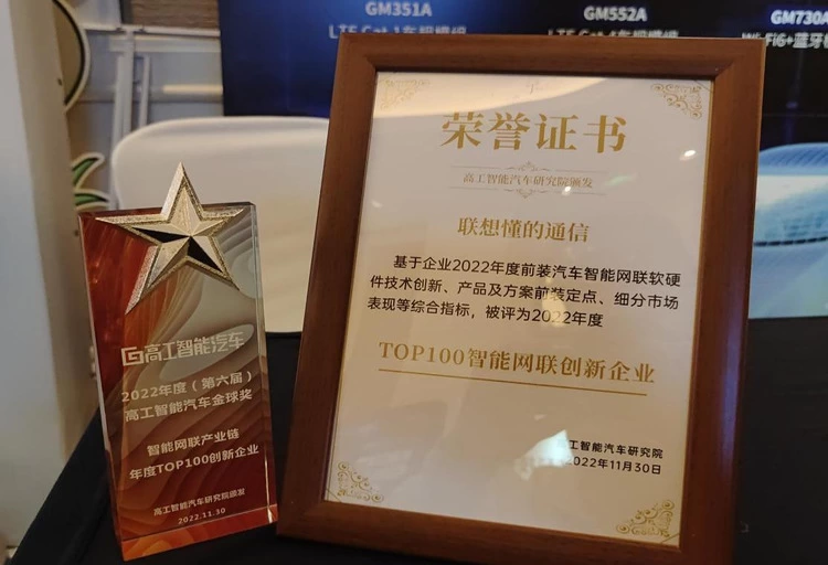 联想懂的通信荣获“2022年度中国智能网联创新企业TOP100”奖项