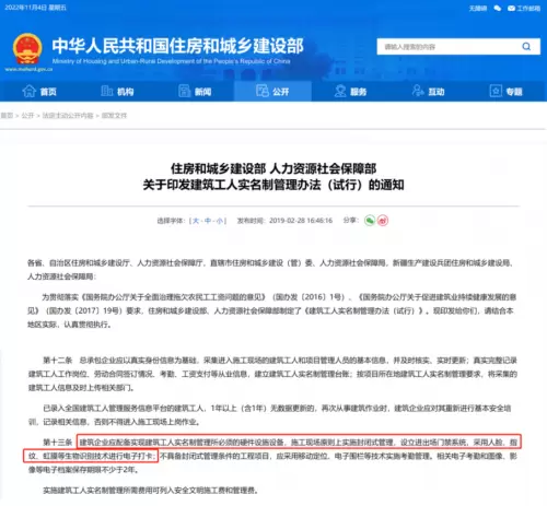 (图:住建部于2019年推行了《建筑工人实名制管理办法(试行)》)