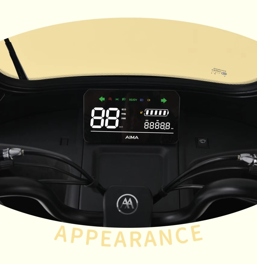爱玛墩墩NQ7车身配置了一体式的操控台,超大屏仪表,晴天看得清、夜行不扎眼,骑行数据一目了然。车身还配有高柔的沙发坐垫,乘坐时自动贴合缓解压力,舒适度极高。