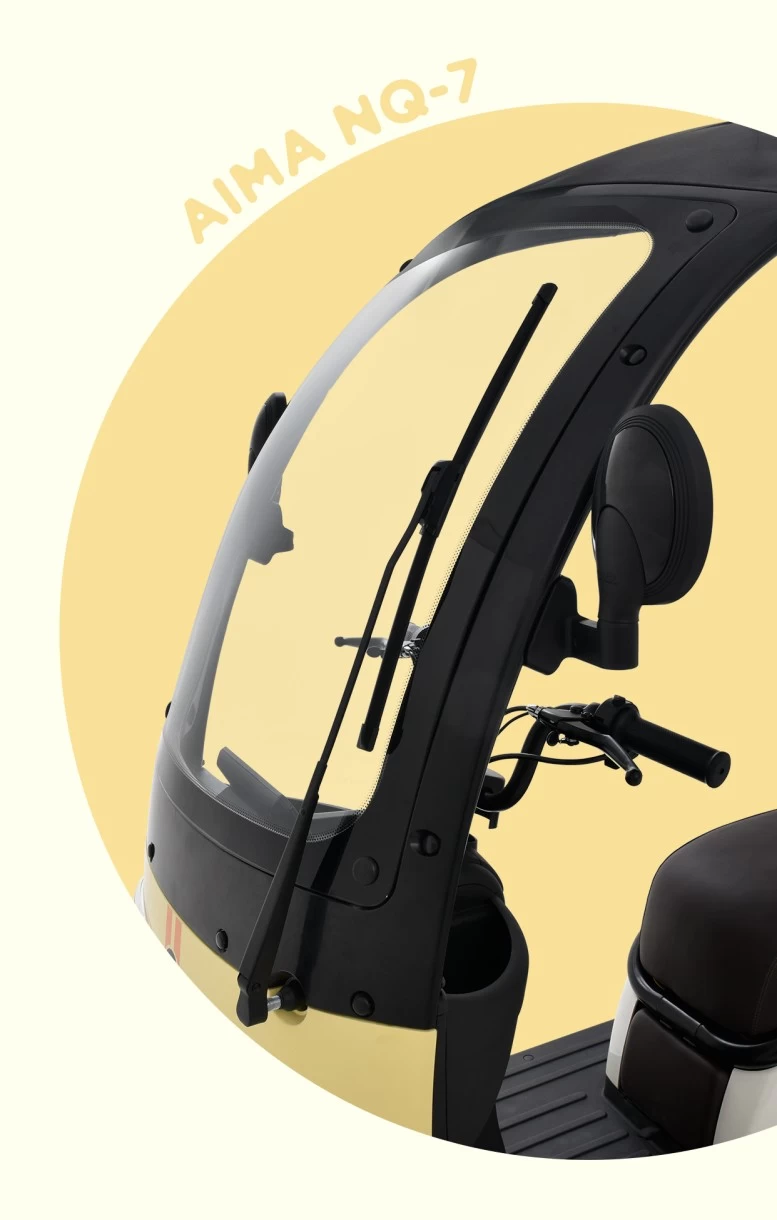 爱玛墩墩NQ7采用弧形顶棚,骑行过程中减少风阻,还有利于雨水流下。超清钢化玻璃,晴天有效阻隔紫外线,雨天搭配大角度无骨雨刷器,让雨雪天出行更从容。