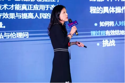 会议分为四个板块,分别是政策解读及AI技术应用,AI+智慧医疗、教育,AI+智慧商业及AI+金融科技与投融资。26日上午政策解读及AI技术应用作为第一个主要议程,下午则是最为热门的AI+智慧医疗、教育板块,近几年AI在医疗上的应用是整个社会关注的焦点,深睿医疗的副总裁Sally Yang应邀参与了这个板块的议程并发表了题为《AI在医疗领域的应用前景和未来》的主题演讲。