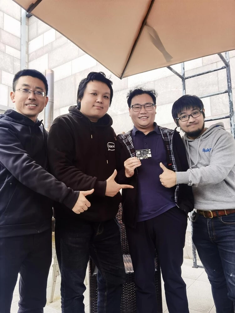 EwokOS开发者杭州聚会(从左到右依次为进迭时空创始人陈志坚、Rokid M工作室曾滔、进迭时空创始人孙彦邦、EwokOS作者Misa)