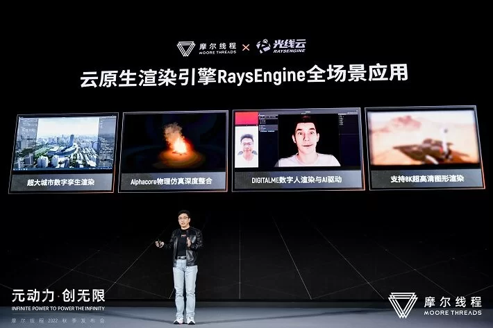 在2022秋季发布会上,摩尔线程还与光线云RaysEngine云原生实时渲染引擎强强联手,带来当前元宇宙产业下的四个典型场景演示,高质量渲染效果完美展现了云原生渲染引擎与摩尔线程多功能GPU结合的强大实力。
