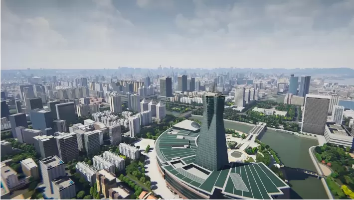 该场景展现了整个杭州的数字面貌,包含高精度地形、城市建筑模型、复杂的建筑材质,数据规模达到了数十GB,实现了城市级大场景高质量的画面输出与高效率渲染。数据由国内数字孪生方向的头部公司51WORLD提供,渲染由光线云RaysEngine云原生实时渲染引擎在摩尔线程多功能GPU上完成,场景细节不仅达到了数字孪生应用的需要,更是一套本土数字孪生标杆方案的呈现。