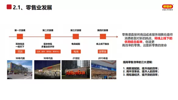 在聊到数字化实践时中程总说道“零售是将商品或者服务销售给最终消费者,面对新的挑战需要将线上线下的优势结合起来,创造更高效率的零售,这是新零售的使命。”