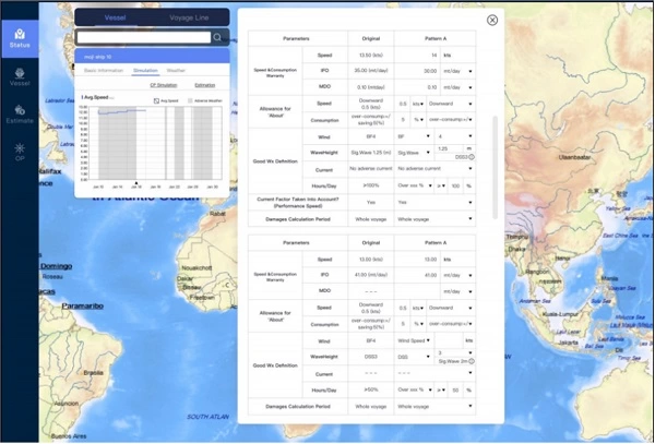 “针对航运市场信息非对称性的特点,我们可以实现可视化全球主流船舶性能数据展示。通过智能化、多维度的实现行业通用的‘好天气计算法’评估船舶性能状况,实现为租船方提供真实数据分析功能,解决降低租船链条上的成本亏损和风险投入,帮助租家实现租船业务利益最大化。”