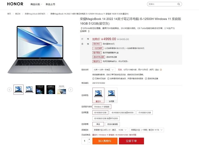 荣耀用户首选高性能轻薄本!荣耀MagicBook 14 2022限时直降500元
