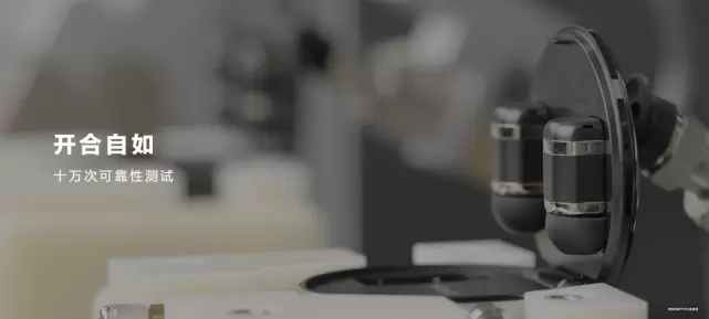 作为一款自带耳机的新型手表,华为WATCH Buds创新的弹盖设计,只需轻轻一推,表盘即刻如同怀表一样弹起[3],两只耳机吸附于手表表盖,科技感与仪式感并存。为确保优秀的产品体验,华为WATCH Buds采用超微型精密转轴,通过凹凸轮配合设计实现转轴顺滑开合,并且经过10万次[4]开合、5kg受力等苛刻的测试,坚固耐用。