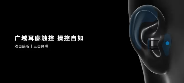 除了左右耳机自适应识别技术外,华为WATCH Buds的耳机还支持广域耳廓触控功能,耳机、耳廓或靠近耳屏的脸颊区域都可操控,范围更广、识别更准确。双击可接挂电话、播放/暂停音乐,三击可开关降噪功能,还支持操作自定义[6],多种功能,敲一敲耳朵即可触达,操控更自如。