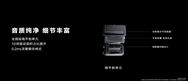 音质方面,华为WATCH Buds耳机搭载四磁结构的全频段微平板单元,配合定制的复合振膜,具备全频响应能力,提升低频效果和高频性能,用户可以聆听到丰富的声音细节。另外,华为WATCH Buds耳机还支持三重实时听感优化功能,根据耳道结构差异、佩戴状态和音量大小,实时优化听音效果,定制属于你的好声音。