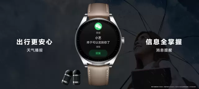 后续OTA升级支持,微信手表版仅限中国大陆地区,需在手表与手机蓝牙正常连接时使用 ,目前仅支持 HarmonyOS 2 及以上或安卓 9.0 及以上版本的手机,该功能需后续OTA升级支持,iOS不支持此功能。 ↑