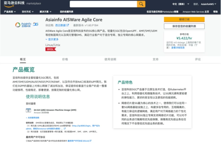 亚信科技5G专网产品支持AWS Cloud 5G服务 正式上架AWS Marketplace