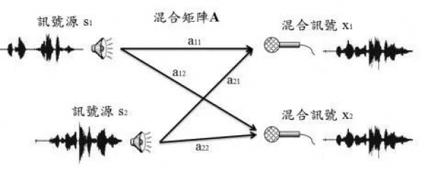为了解决鸡尾酒会问题,盲源分离成了近年来信号处理领域的一个研究热点,BBS 是指一种不需要任何预先得到资讯,从感测器所量测到的混合信号(mixtures)中,把信号源(sources)抽取、分离出来的方式,目前在语音信号分离、麦克风阵列信号处理、生医讯号如脑电波(EEG)处理等领域都有不少研究。