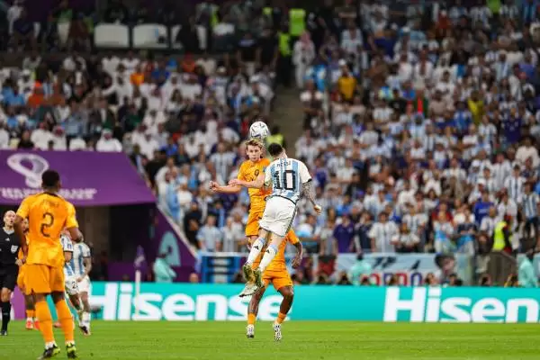 比赛开始后第35分钟,莫利纳接过梅西绝妙传球后捅射破门,打进首球。第73分钟梅西主罚点球打入球门,将比分扩大至阿根廷2:0荷兰,并凭借此球成为世界杯现役进球数第一。荷兰队并未失去信心,伟格霍斯特在第83分钟和最后时刻,梅开二度,将阿根廷带入加时赛。加时赛中两方均无建树,两队再次在世界杯的绿茵场上进入点球大战,最终阿根廷4:3胜出。
